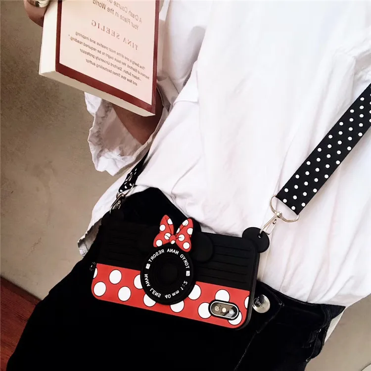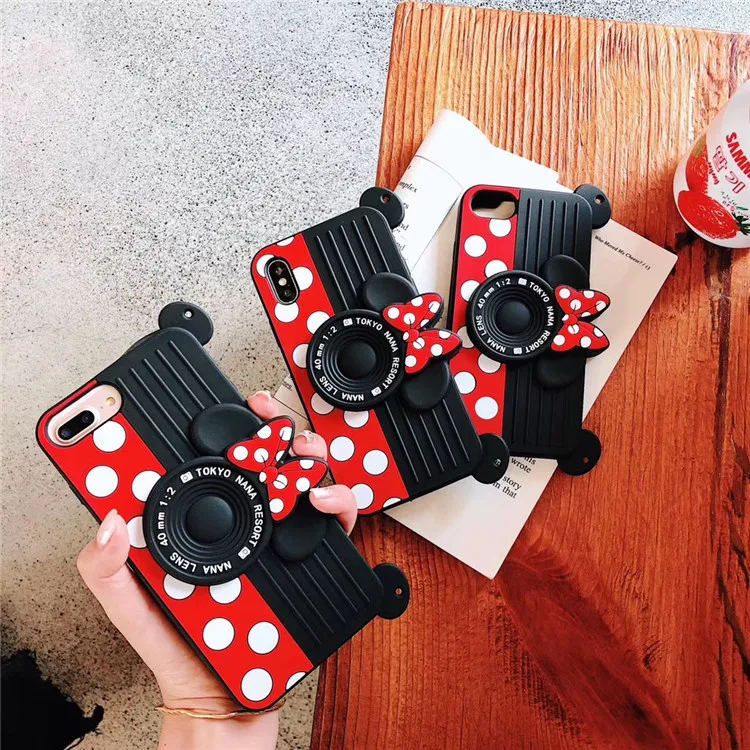 COMPATIBILITY: Cute 3D Minnie Mouse Polka Dots Camera Case Cover Compatible for iPhone.